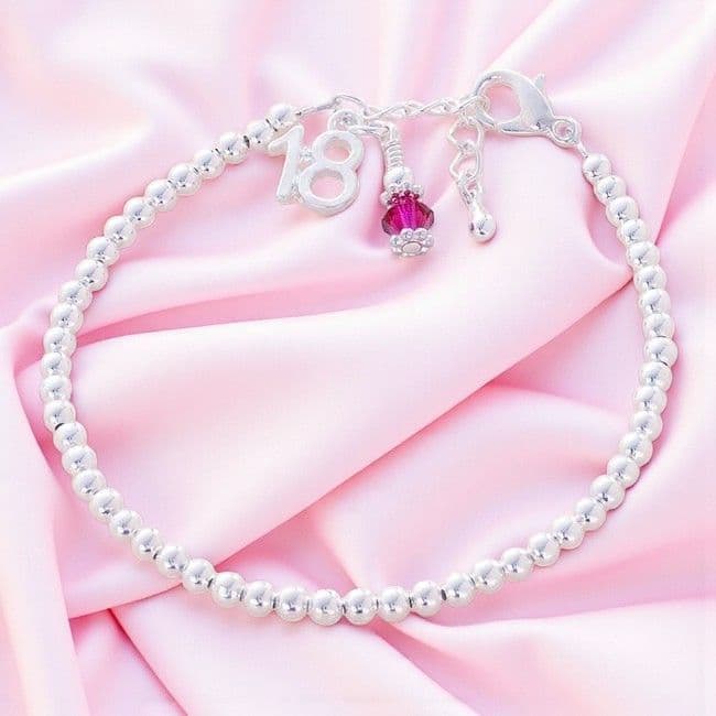Birthstone Bracelet for 18th Birthday with 18 Charm, on Choice of Gift Boxes.