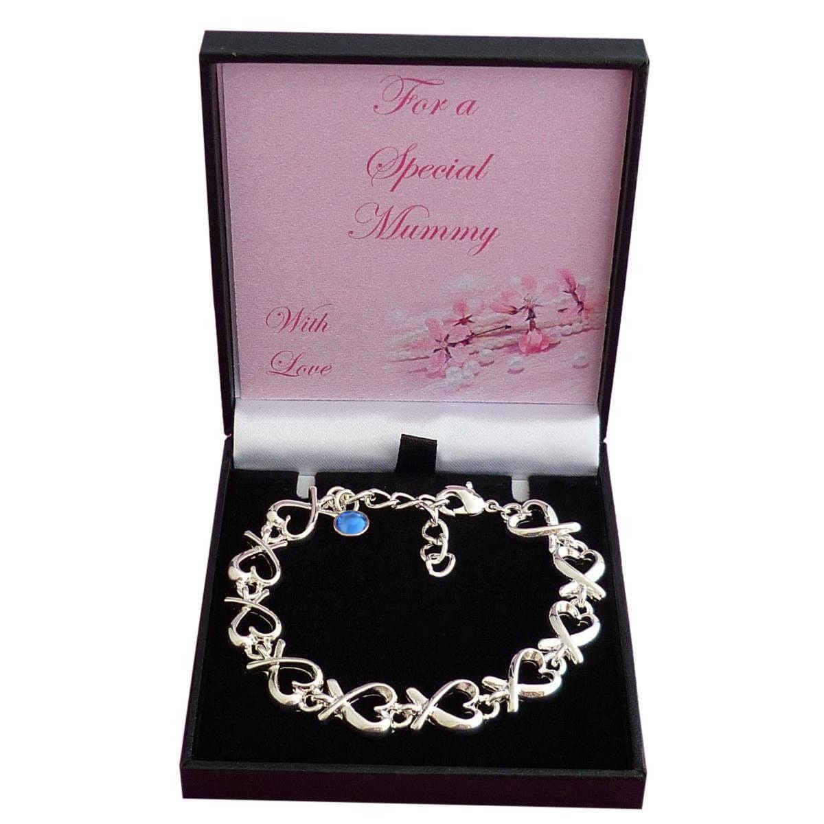 Birthstone Bracelet for Mum or Mummy with beautiful Eternal Hearts chain in a gift box for a Special Mum, Mummy or Someone Special.